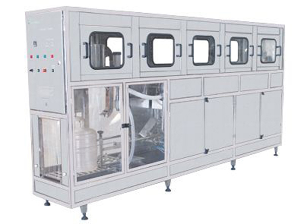 小型灌裝機(jī)由沖洗、滴干、灌裝和壓蓋一體主機(jī)組成,適用于3-5加侖桶裝飲用水的灌裝生產(chǎn)。沖洗過(guò)程分三道工序:堿性液態(tài)除污劑內(nèi)、外沖洗。堿性水、消毒水可循環(huán)使用。整個(gè)沖洗灌裝封蓋過(guò)程采用了PC電腦控制,本設(shè)備有連鎖、信號(hào)、自測(cè)等安全裝置。