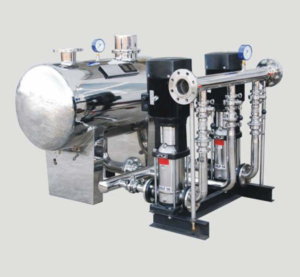 無負壓變頻供水設備投入使用,自來水管網(wǎng)的水進入穩(wěn)流流罐,罐內(nèi)空氣從真空消除器排出,待水充滿后,真空消除器自動關(guān)閉。當自來水管網(wǎng)壓力能夠滿足用水要求時,系統(tǒng)由旁通止回閥向用水管網(wǎng)直接供水;當自來水管網(wǎng)壓力不能滿足用水要求時,系統(tǒng)壓力信號由遠傳壓力表反饋給變頻控制器,水泵運行,并根據(jù)用水量的大小自動調(diào)節(jié)轉(zhuǎn)速恒壓供水,若運轉(zhuǎn)水泵達到工頻轉(zhuǎn)速時,則啟動另一臺水泵變頻運轉(zhuǎn)。水泵供水時,若自來水管網(wǎng)的水量大于水泵流量,系統(tǒng)保持正常供水:用水高峰時,若自來水管網(wǎng)水量小于小泵流量量,穩(wěn)流罐內(nèi)的水作為補充水源仍然能正常供水,此時,空氣由真空消除器進入穩(wěn)流罐,罐內(nèi)真空遭到破壞,確保了自來水管網(wǎng)不產(chǎn)生負壓,用水高峰過后,系統(tǒng)又恢復到正常供水狀態(tài)。當自來水管網(wǎng)停水,造成穩(wěn)流罐液位不斷下降,液位探測器將信號反饋給變頻控制器,水泵自動停機,以保護水泵機組。夜間小流量供水且自來水管網(wǎng)壓力不能滿足要求時,氣壓罐可以貯存并釋放能量,避免了水泵頻繁啟動